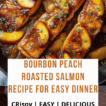 This Bourbon Peach Roasted Salmon features succulent salmon fillets marinated in a flavorful blend of peach preserves, bourbon, and spices, then seared and finished in the oven with fresh peaches. The recipe balances sweet, savory, and tangy flavors, resulting in a juicy, tender fish dish perfect for an elegant yet simple dinner.