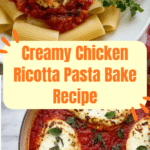 For a dinner party, plate individual servings in shallow bowls topped with a fresh herb sprig and a small drizzle of balsamic reduction for an elegant touch. Alternatively, serve it family-style straight from the skillet to highlight the rustic, comforting nature of this Chicken Ricotta Pasta Bake with Spinach and Marinara Recipe.