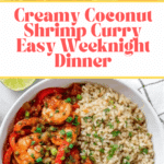 - Serve: Plate the creamy coconut shrimp and serve over brown rice or quinoa. Garnish with the remaining green parts of scallions and extra cilantro or parsley if desired for added freshness and color.