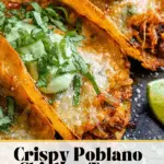 These Crispy Poblano Chicken Tacos feature tender shredded chicken baked with poblano peppers and spices, layered with melted Monterey Jack cheese inside soft, lightly toasted corn tortillas. Topped with a creamy, zesty avocado-jalapeño salsa, these tacos deliver a perfect balance of smoky, spicy, and fresh flavors in every bite—ideal for a flavorful weeknight dinner or weekend gathering.