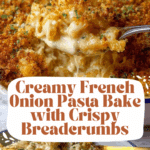 You can store leftovers of this French Onion Soup Pasta Recipe in an airtight container in the refrigerator for up to 3 days. The flavors actually meld beautifully overnight, making it even tastier the next day! Just be cautious of the breadcrumb topping, which may soften—re-crisp in the oven if you like.