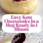This keto cheesecake in a mug is a quick, creamy, and rich dessert that can be made in just over a minute using a microwave. Perfect for those following a low-carb lifestyle, this single-serving cheesecake combines cream cheese, sour cream, and monkfruit sweetener for a smooth and satisfying treat that can be enjoyed warm or chilled.