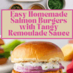 Delicious and flavorful salmon burgers made with fresh wild-caught salmon, seasoned with a blend of spices and herbs, then pan-fried or grilled to perfection. Served with a tangy homemade remoulade sauce and fresh toppings on toasted buns, these salmon burgers are a perfect meal for any occasion.