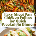 This Sheet Pan Chicken Fajitas recipe is an easy, flavorful, and colorful meal perfect for busy weeknights. Marinated chicken breast strips and a vibrant mix of bell peppers and onions are seasoned with a homemade fajita spice blend, then roasted on a single sheet pan for a quick and hands-off dinner. Served with warm flour tortillas and your favorite fajita toppings, this dish delivers classic Tex-Mex deliciousness with minimal cleanup.